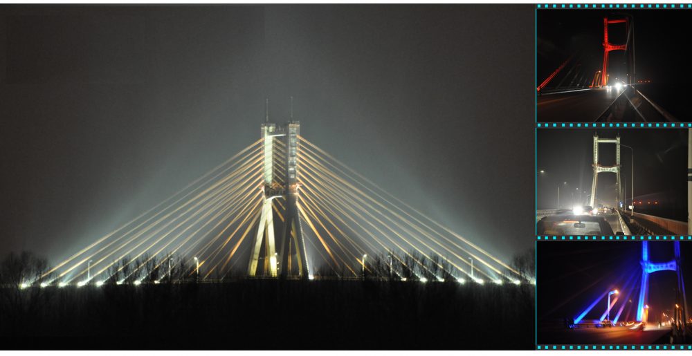 4、橋梁夜景亮化的燈具選擇也必須嚴格把控,具有良好的安全防護、防腐、防震性能,便于維護和更換。光源應選擇長壽命、節能光源。